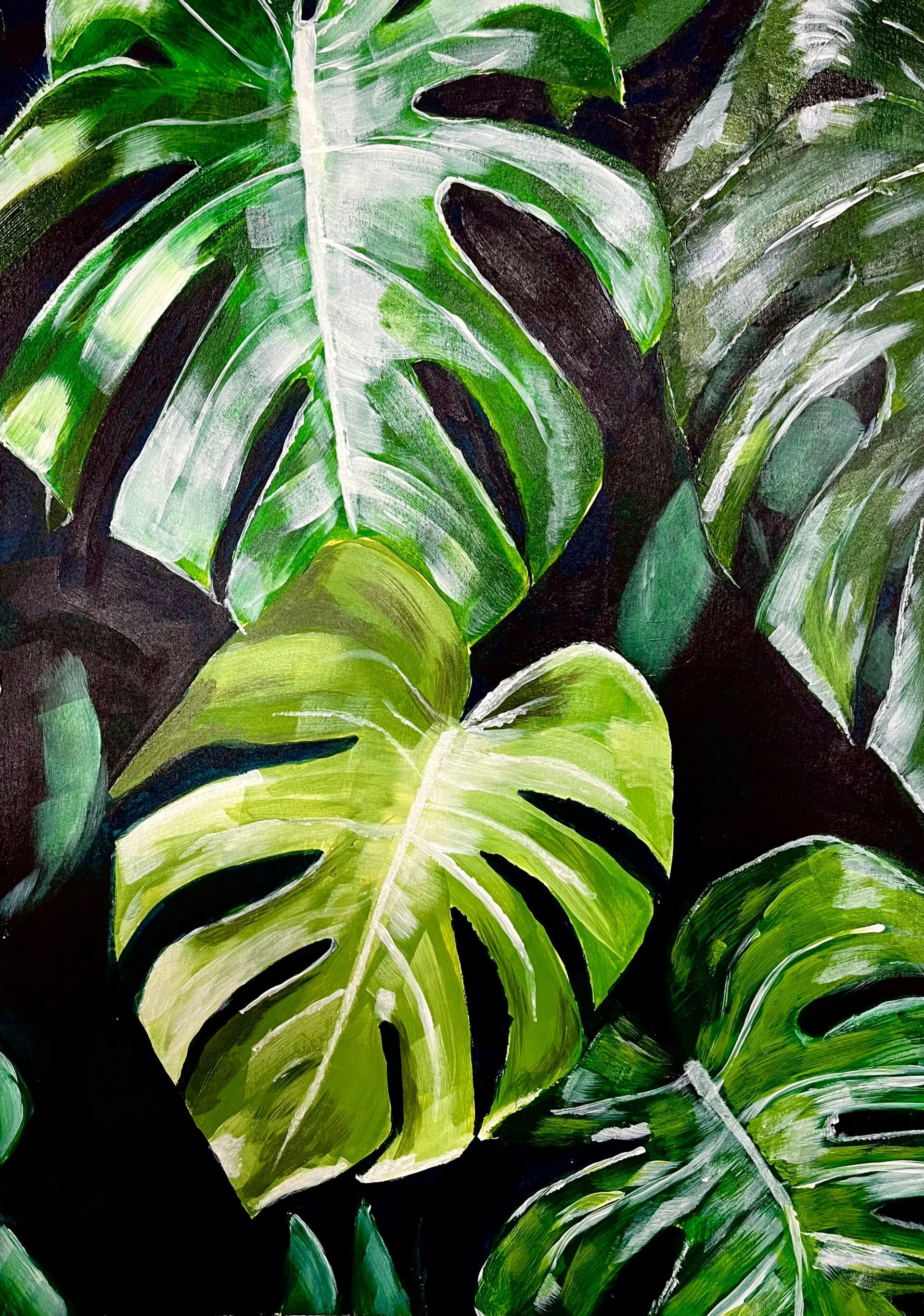 This week we began our first session with acrylics, focusing on the advantages of underpainting and controlled layering. The result - a whole array of beautiful trees and house plants, from colourful, contemporary renditions to shiny green foliage.