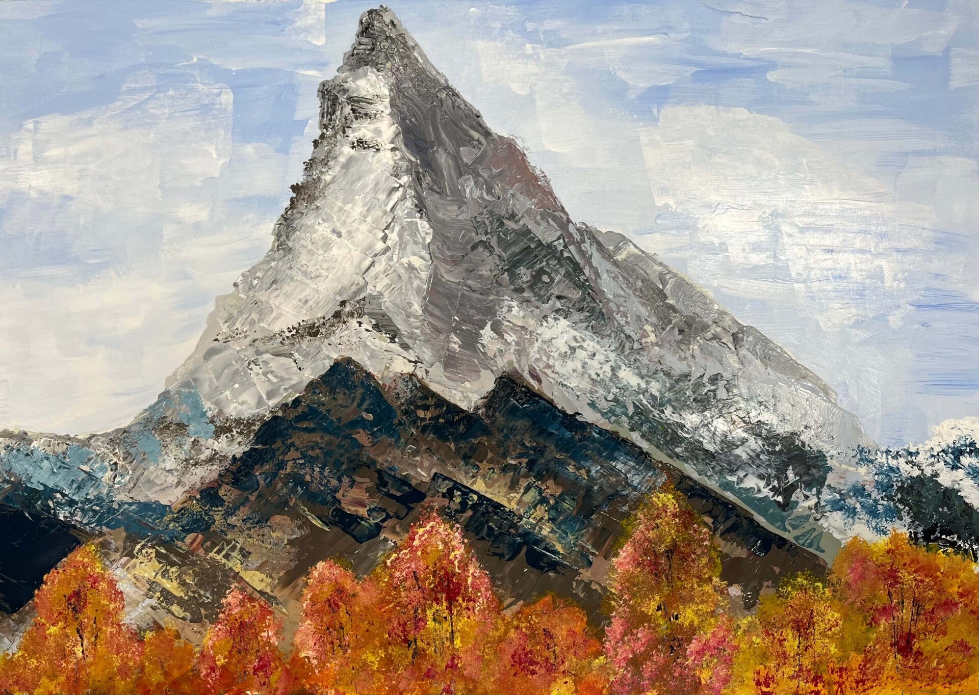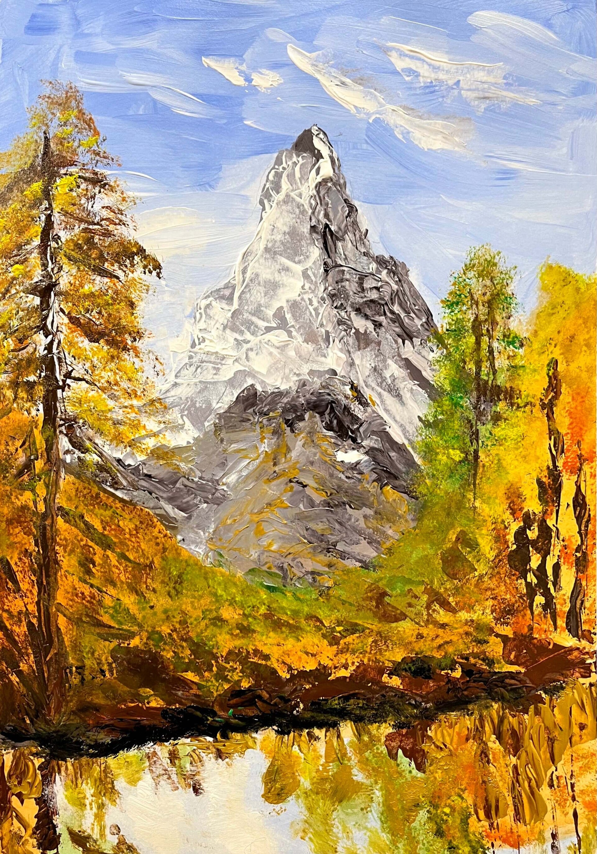 This week our talented bunch are scaling the Matterhorn… with flat brushes, palette knives and a mountain of acrylics! We’re using impasto techniques, applying neat acrylic paint to create a textured, three-dimensional effect.