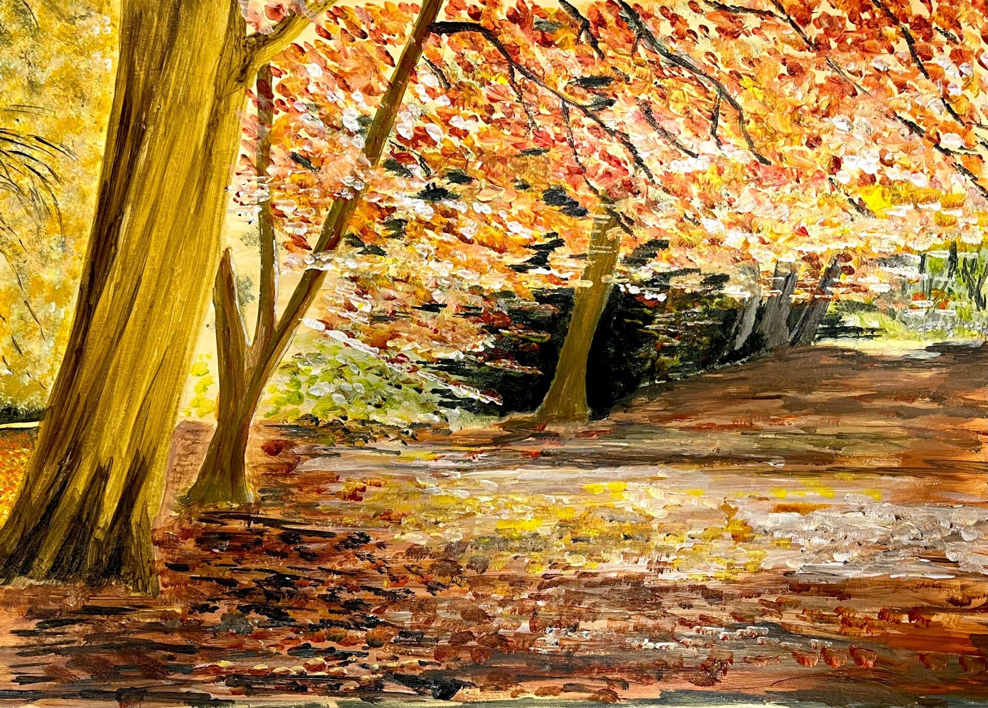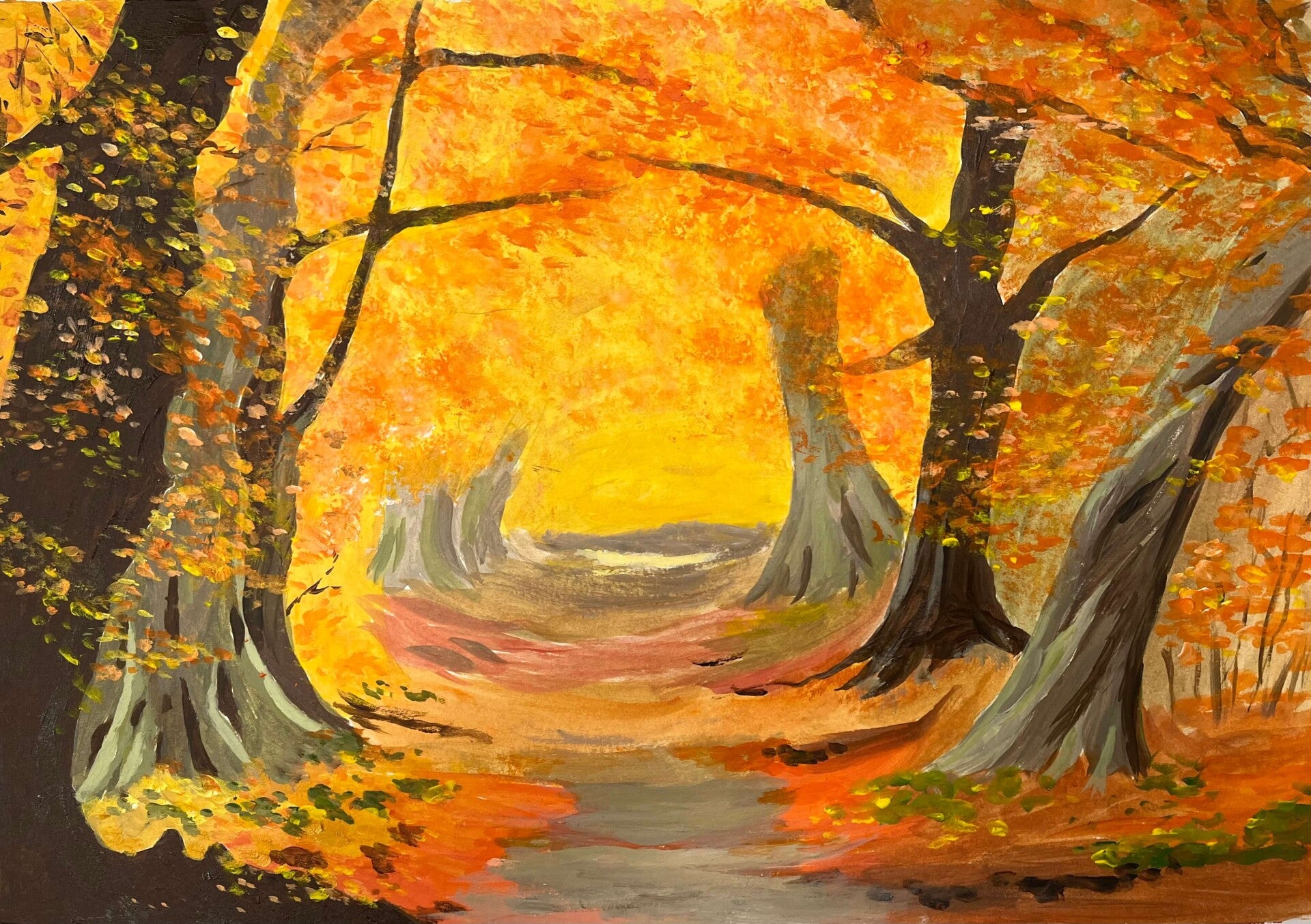Autumn colours and acrylic paint… With a swish of the brush here, and swipe of a palette knife there, our warm autumn scenes have come to life. From fiery reds to glowing yellows, each one reflects the beautiful, changing colours of this magical season.