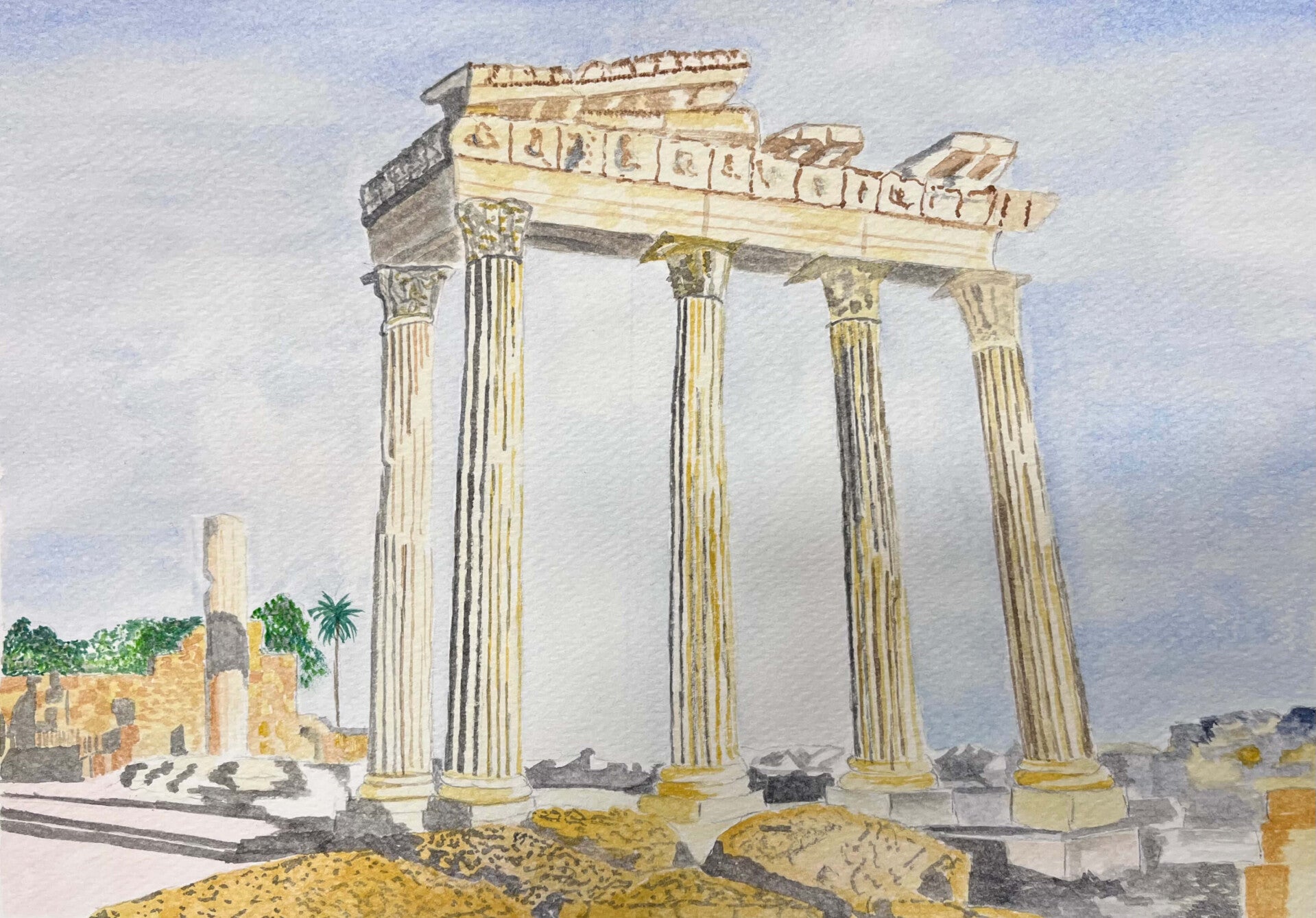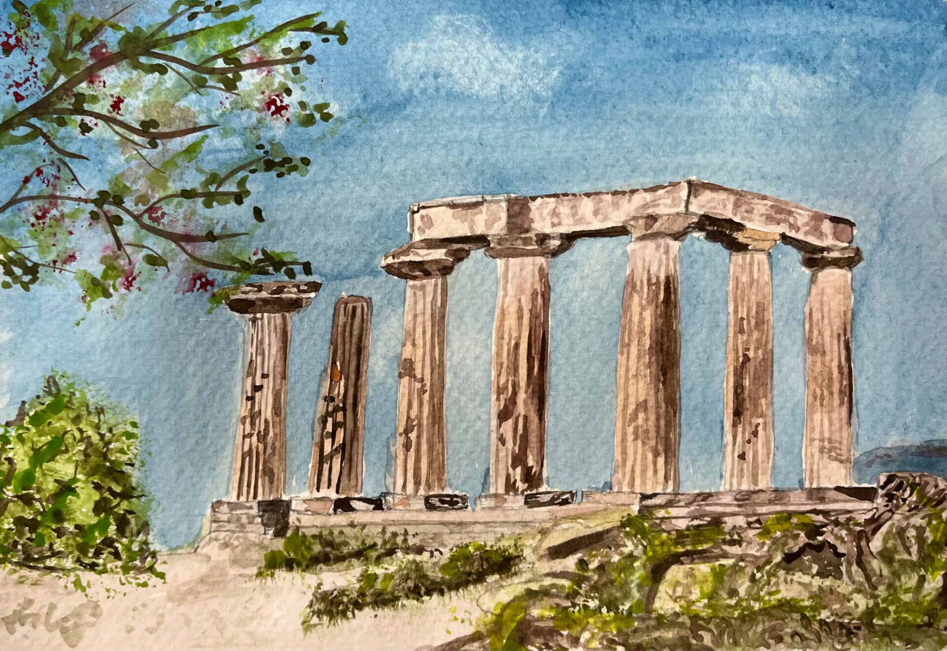 The second week of watercolour has taken us back in time… about 2,000 years! From Greek pillars in the Acropolis to the Roman gate posts of Hadrian’s walls, we’re celebrating the wonderful architecture of the Ancient world.