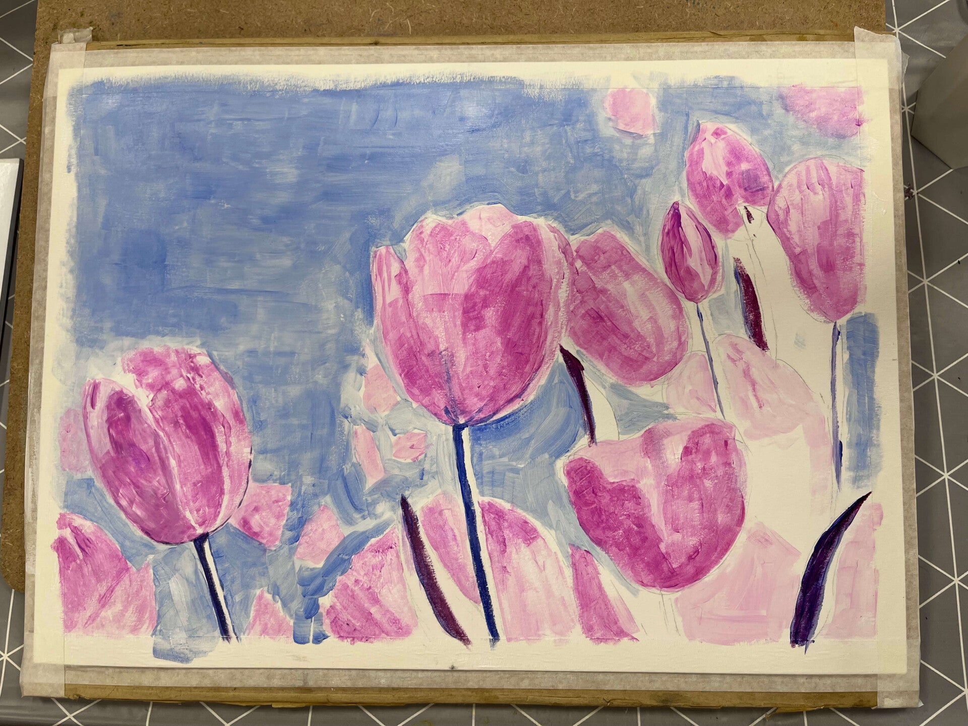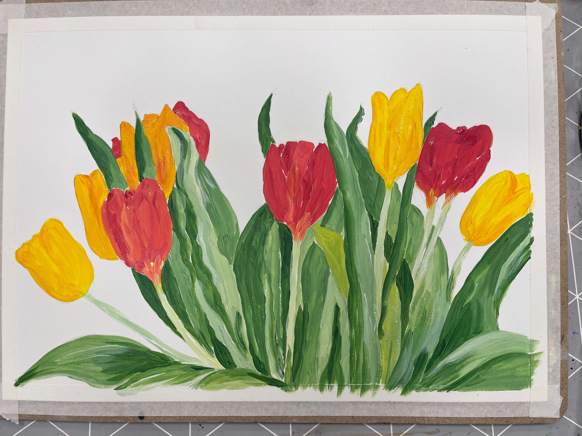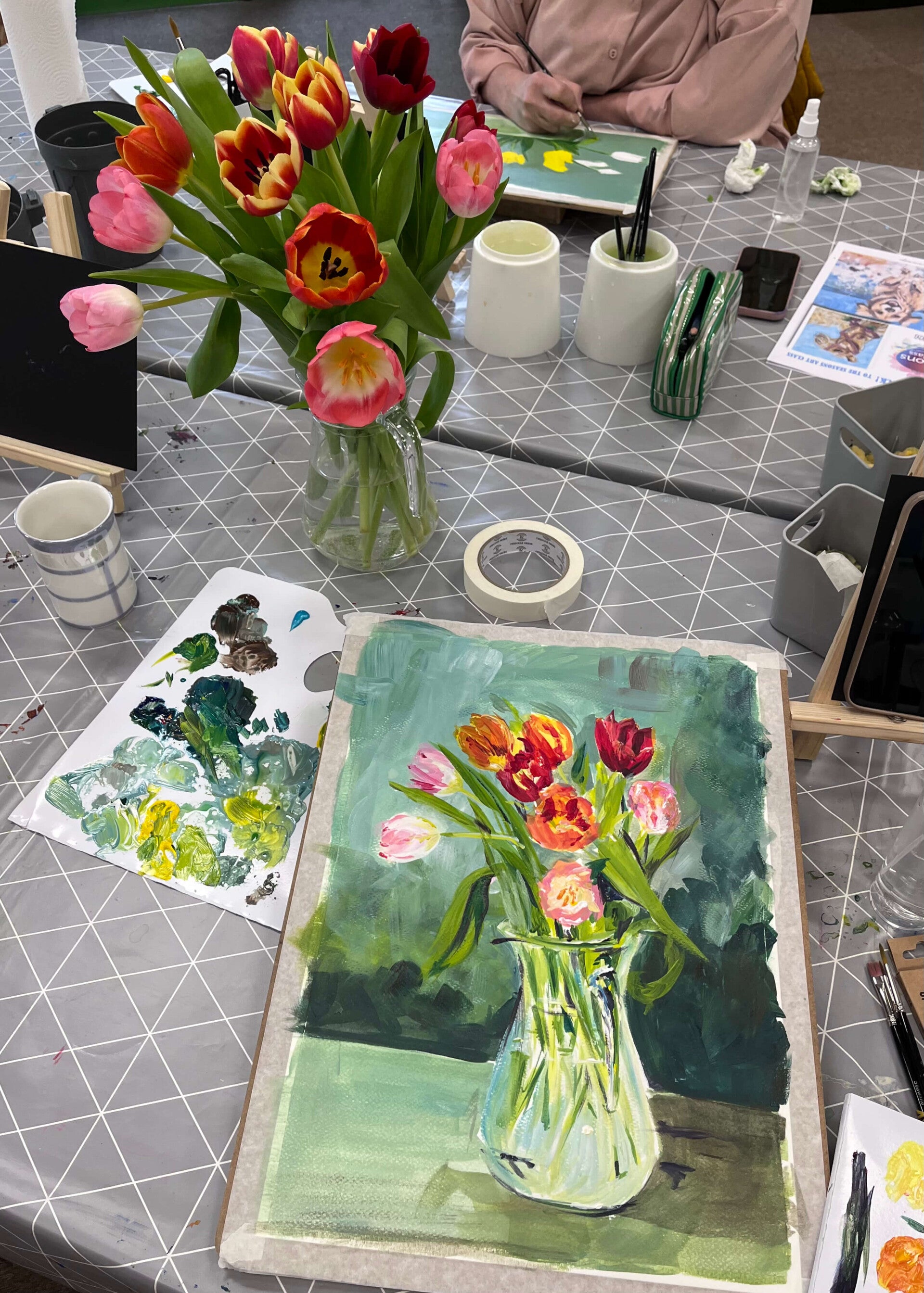 We had a bit of a tulip takeover in class this week! Tiptoeing our way through the first week of acrylics.. some have opted for bright and punchy, others soft and painterly. Bloomin Beautiful.!