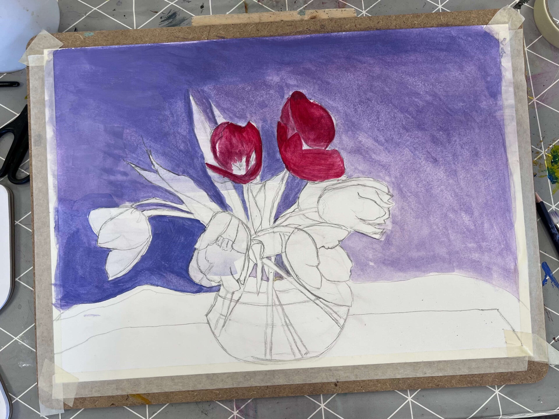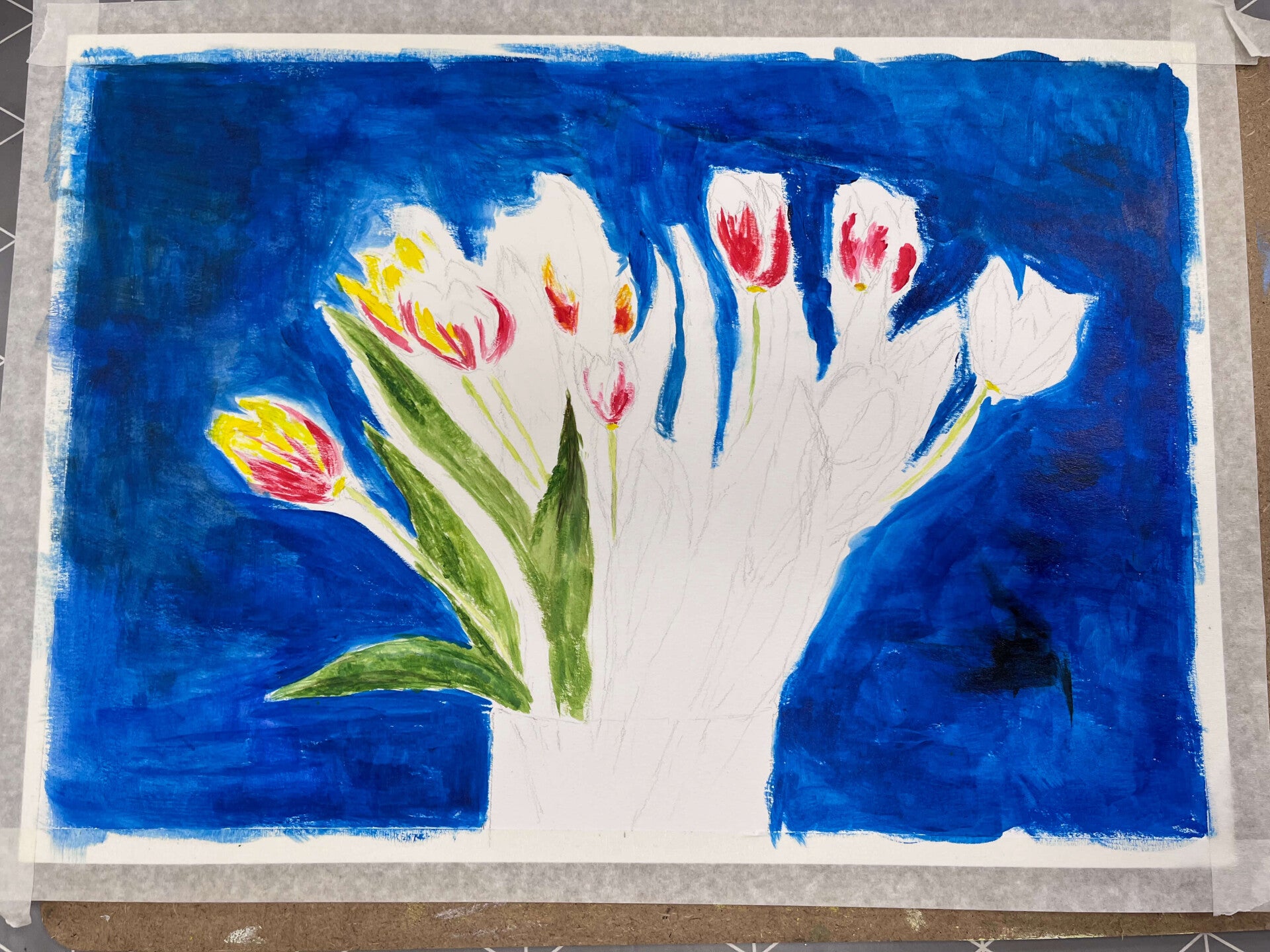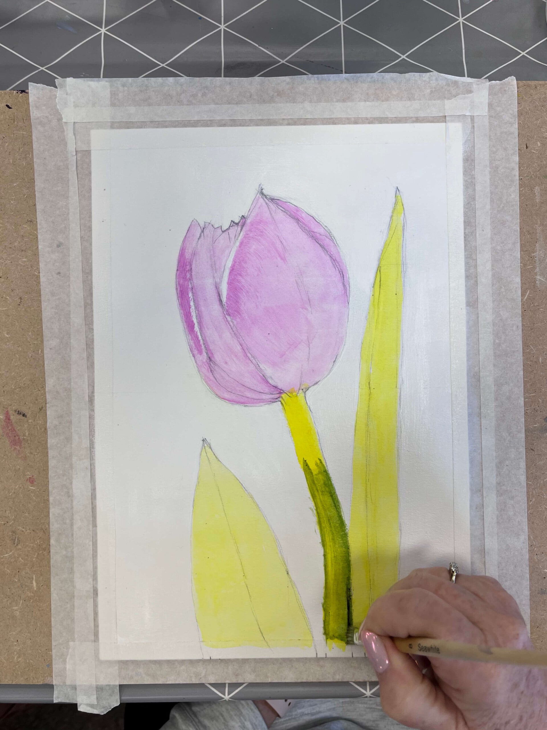 We had a bit of a tulip takeover in class this week! Tiptoeing our way through the first week of acrylics.. some have opted for bright and punchy, others soft and painterly. Bloomin Beautiful.!