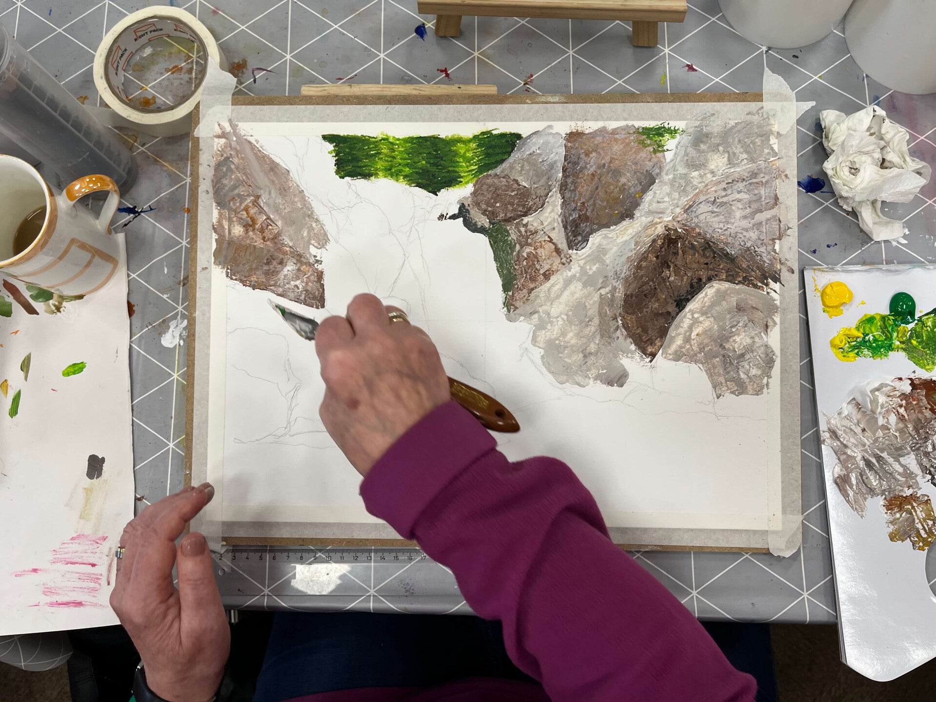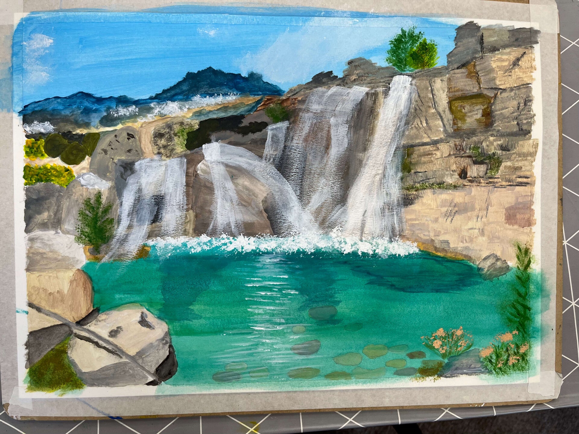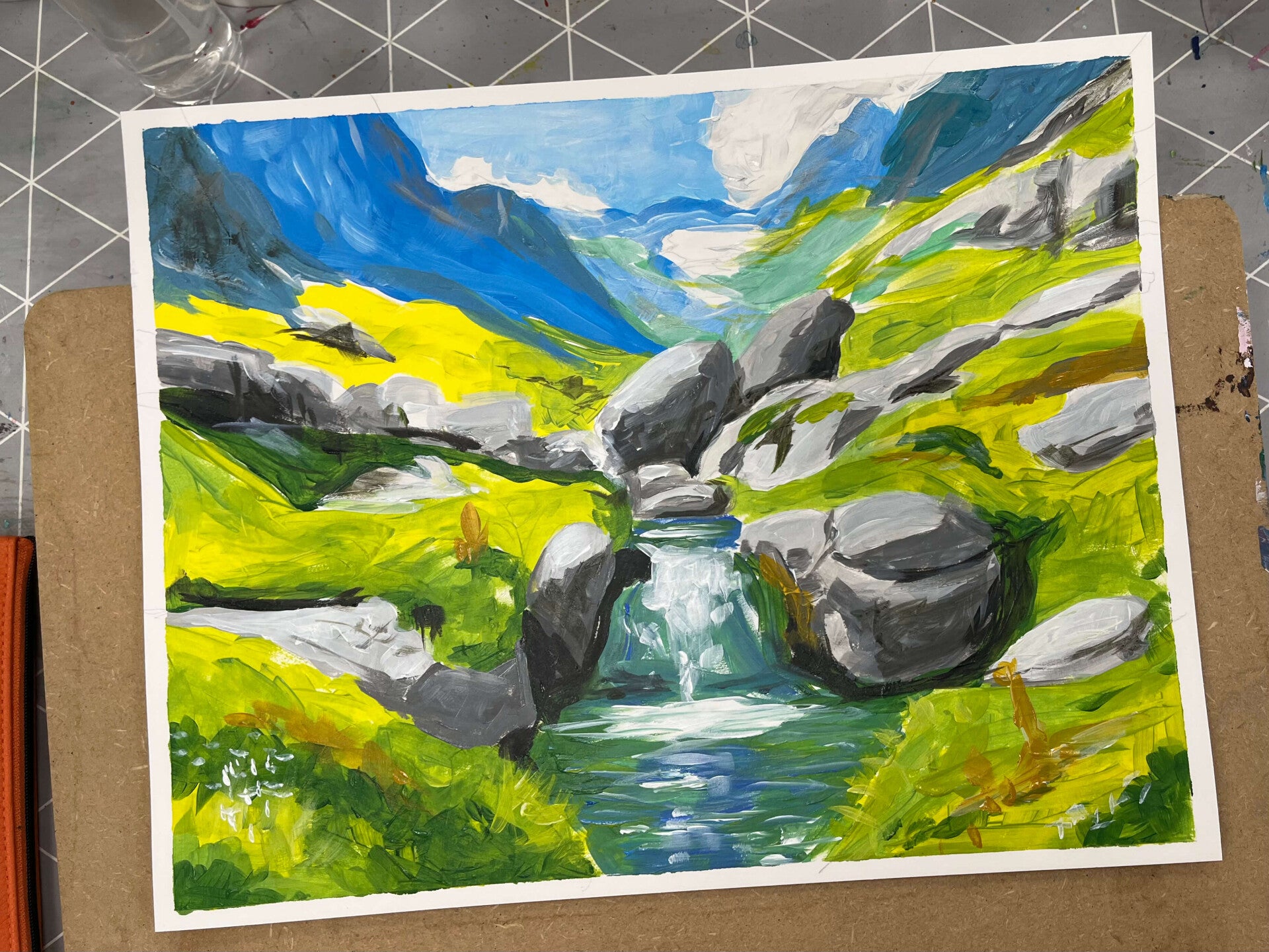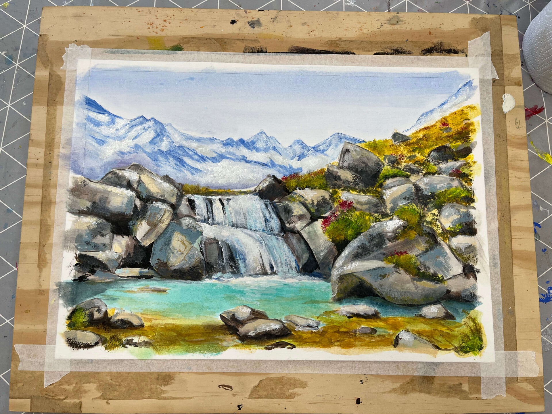 Alpine waterfalls are the theme this week, and we’re off to a strong start! Early layers are down, and some waterfalls are already flowing.. there’s plenty to admire even at this early stage. Really looking forward to seeing how these develop.